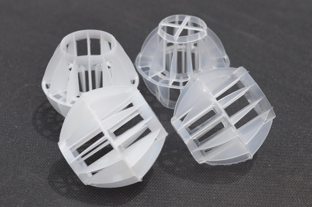 多面空心球中間鏤空結(jié)構(gòu)形成空隙大,不易被阻塞的特性。這種結(jié)構(gòu)在空氣洗滌、廢氣吸收、灰塵過(guò)濾等廢氣處理工程方面應(yīng)用,具有處理風(fēng)量大、阻力小的特點(diǎn)。由于多面空心球的空隙中有較高的滯液量,可使塔內(nèi)液體停留時(shí)間長(zhǎng),從而增加了氣體與液體的接觸面積和接觸時(shí)間。