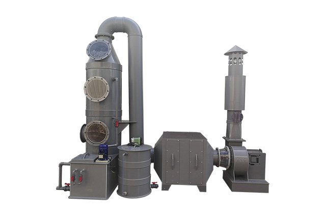 PP廢氣塔工作原理:對于腐蝕性氣體(如酸、堿性廢氣)的治理,多采用液體吸收法治理。采用液體吸收法治理廢氣,pp廢氣塔具有結(jié)構(gòu)簡單、能耗低、凈化效率高和適用范圍廣的特點,能有效去除氯化氫氣體(HCl)、氟化氫氣體(HF)、氨氣(NH3)、硫酸霧(H2SO4)、鉻酸霧、氰氫酸氣體(HCN)、堿蒸氣(NaOH)、硫化氫氣體(H2S)、福爾馬林(HCHO)等水溶性氣體。酸霧廢氣由風(fēng)管引入廢氣塔,經(jīng)過填料層時,廢氣與吸收液進(jìn)行氣液兩相充分接觸吸收中和反應(yīng),酸霧廢氣經(jīng)過凈化后,再經(jīng)除霧板脫水除霧后由風(fēng)機(jī)排入大氣。吸收液在廢氣塔底經(jīng)水泵增壓后在塔頂噴淋而下,最后回流至塔底循環(huán)使用。凈化后的酸霧廢氣達(dá)到地方排放標(biāo)準(zhǔn)的排放要求,低于國家排放標(biāo)準(zhǔn)。