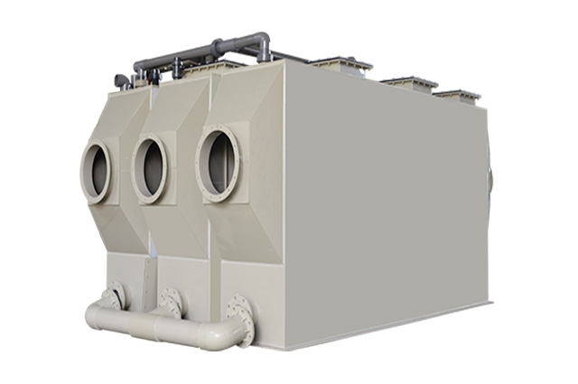 PP臥式噴淋塔也叫臥式交叉流式洗滌塔、PP臥式廢氣處理塔。臥式噴淋塔適用于空間狹小的安裝環(huán)境,多用于室內安裝??捎糜谔幚砜扇苄詺怏w、液態(tài)微粒、固粒狀物、臭氧。在工業(yè)用途上可當做冷卻塔、濕潤機,并適用于各種工程制程的廢氣處理。PP臥式噴淋塔的工作原理:有害廢氣由離心通風機壓入或吸入進風段,再流動至填料層,與噴淋液接觸反應。噴淋系統(tǒng)利用清水作為循環(huán)吸收液,循環(huán)水從塔體的上部的布水器噴淋至填料層,潤濕填料表面形成流動的液膜。PP臥式噴淋塔填料層內氣、液兩相呈逆流流動,氣液兩相在塔體內逆流接觸,利用有害氣體在吸收劑中的一定的溶解度,可溶的部分不斷融入吸收液中,達到降解氣體中有害組分含量的目的??梢赃m當的添加藥劑,有害廢氣不斷被吸收或是被化學反應去除掉,濃度在流動過程中逐漸降低,到PP臥式噴淋塔側部是達到吸收要求排出洗滌塔外。