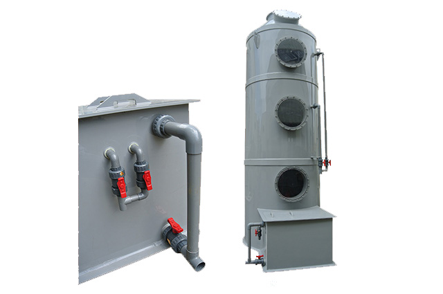 PPs洗滌塔結(jié)構(gòu):洗滌塔由除霧層、噴淋層、填料層、風(fēng)機(jī)、風(fēng)管、塔體、供水箱、供水泵等部分組成。洗滌塔系統(tǒng)的風(fēng)機(jī)組將收集到的廢氣吸入酸霧PPs阻燃洗滌塔內(nèi),流經(jīng)填料層段(氣/液接觸反應(yīng)介質(zhì)),讓廢氣與填充物表面流動(dòng)的藥液(洗滌液)充分接觸,以吸附廢氣中所含的酸性或堿性污物,廢氣經(jīng)過洗滌后,達(dá)標(biāo)排放。